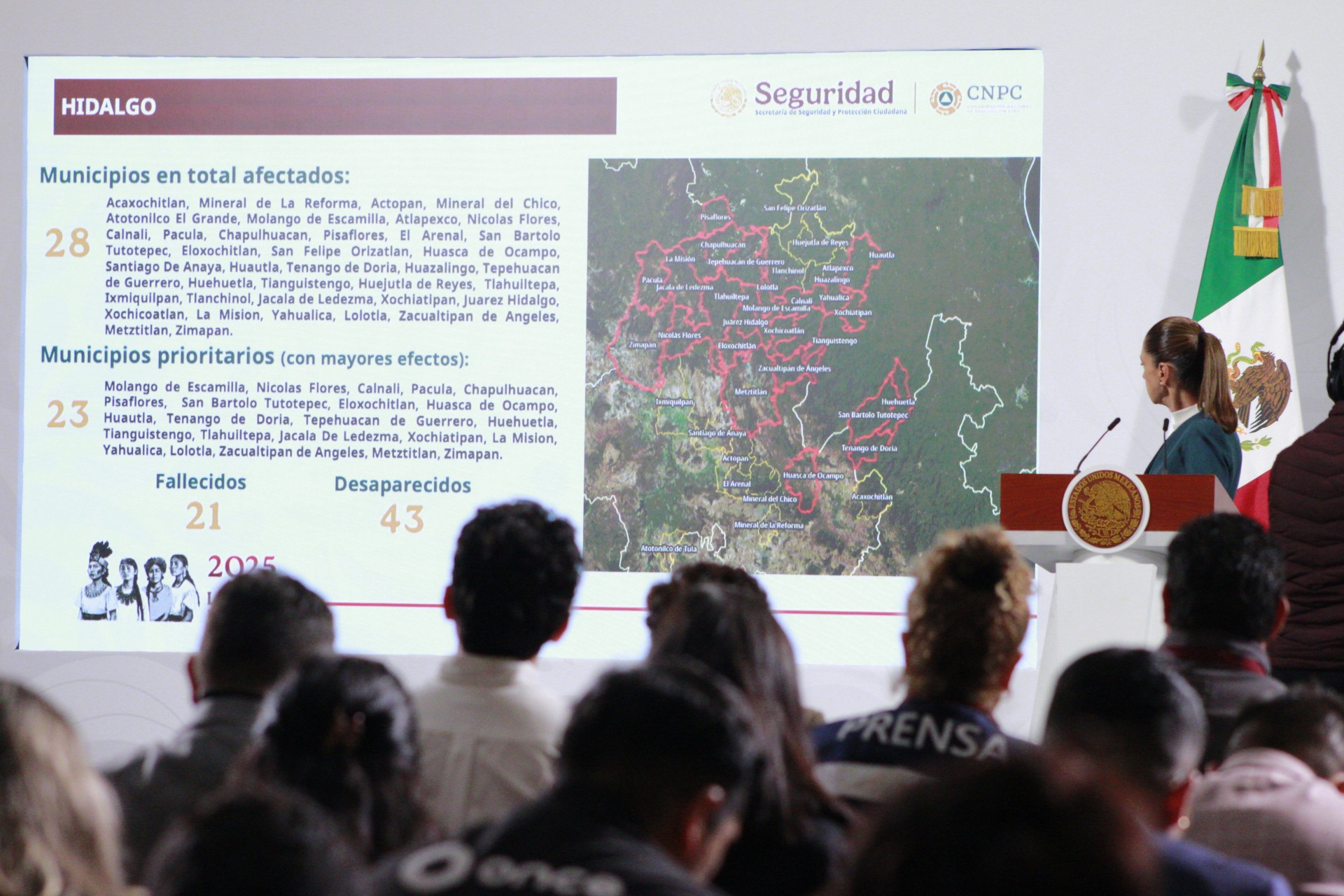 - *Afectaciones por lluvias*: La presidenta informó que se estima que 100 mil viviendas resultaron afectadas en Veracruz, Hidalgo, Puebla, Querétaro y San Luis Potosí. El total de afectados se conocerá hasta que se levante el censo por parte de la Secretaría del Bienestar.