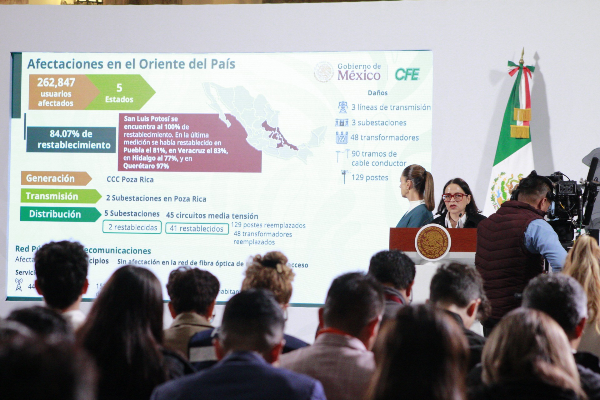 - *Restablecimiento de servicios*: La Comisión Federal de Electricidad (CFE) restableció el 84% del suministro de energía eléctrica en los estados afectados. Se mantienen trabajos para restablecer el servicio en su totalidad.