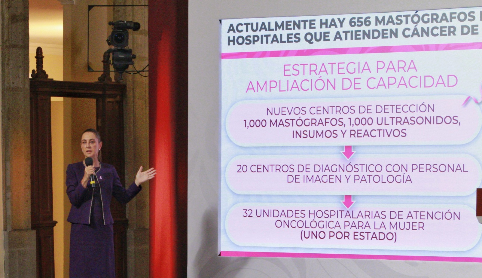 - Modelo Universal de Atención al Cáncer de Mama: La presidenta presentó un modelo de atención universal al cáncer de mama con una inversión de 8 mil millones de pesos. El plan contempla: