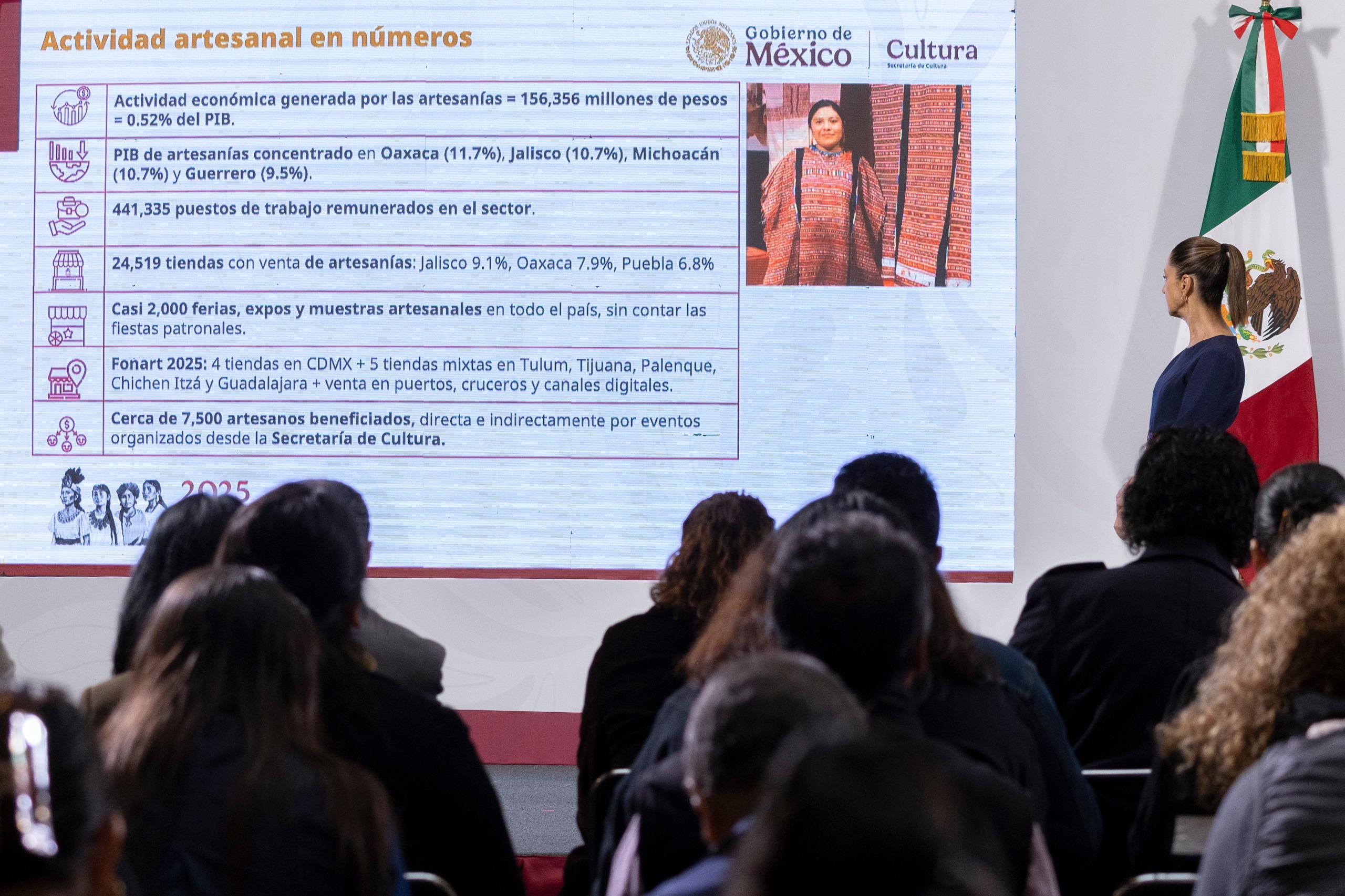 Durante la Mañanera del Pueblo, Sheinbaum señaló que estas acciones se realizan en beneficio principalmente de las mujeres artesanas de pueblos indígenas con el reconocimiento de su trabajo mediante una comercialización honesta de sus productos.
