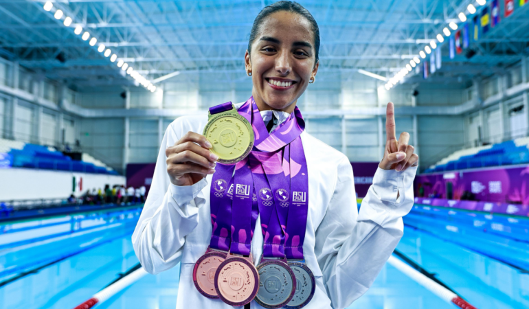 La nadadora guanajuatense Celia del Rocío Pulido Ortiz, originaria de León, es hasta este 17 de agosto la máxima medallista mexicana de los Juegos Panamericanos Junior Asunción 2025, tras conquistar cinco preseas en distintas pruebas de natación: 1 de oro, 2 de plata y 2 de bronce, además de imponer un récord continental.