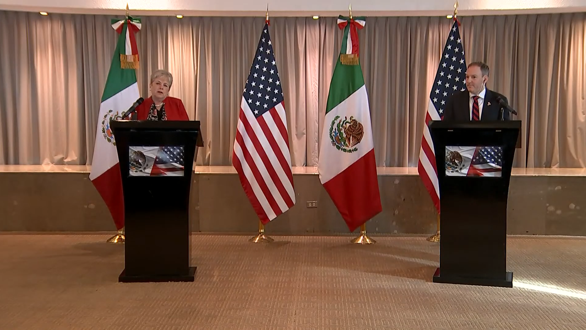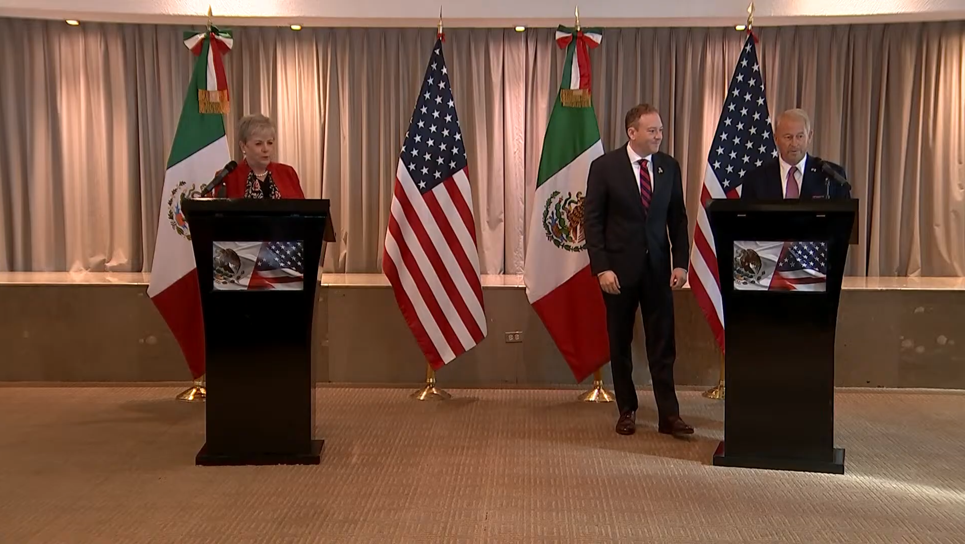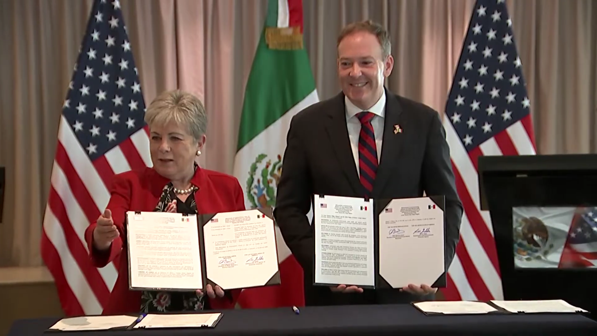 “Este es el primer acuerdo binacional que estamos logrando entre México y Estados Unidos bajo la Administración del presidente Donald Trump y la presidenta Claudia Sheinbaum. Hay un gran compromiso de parte de los dos países por fortalecer la cooperación y esto es lo que hoy estamos demostrando, que sí se puede […] desde que nos reunimos en San Diego en abril pasado al día de hoy hemos logrado grandes acuerdos y hoy culmina con esta gran reunión bilateral”.