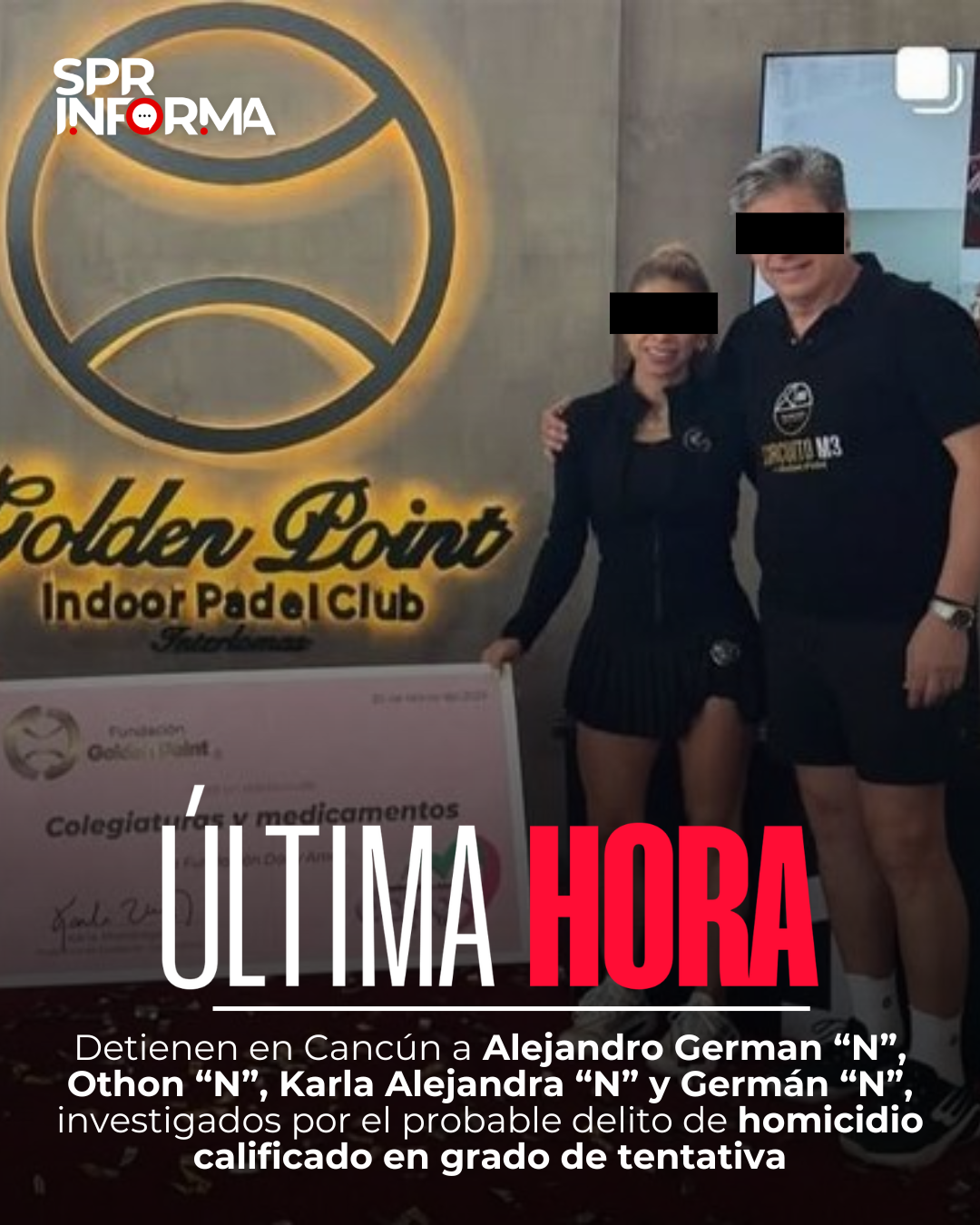Alejandro Germán “N”, empresario conocido en redes sociales como “Lord Pádel”, fue detenido este jueves en el Aeropuerto Internacional de Cancún junto con su esposa, su hijo y un socio, acusados de tentativa de homicidio.