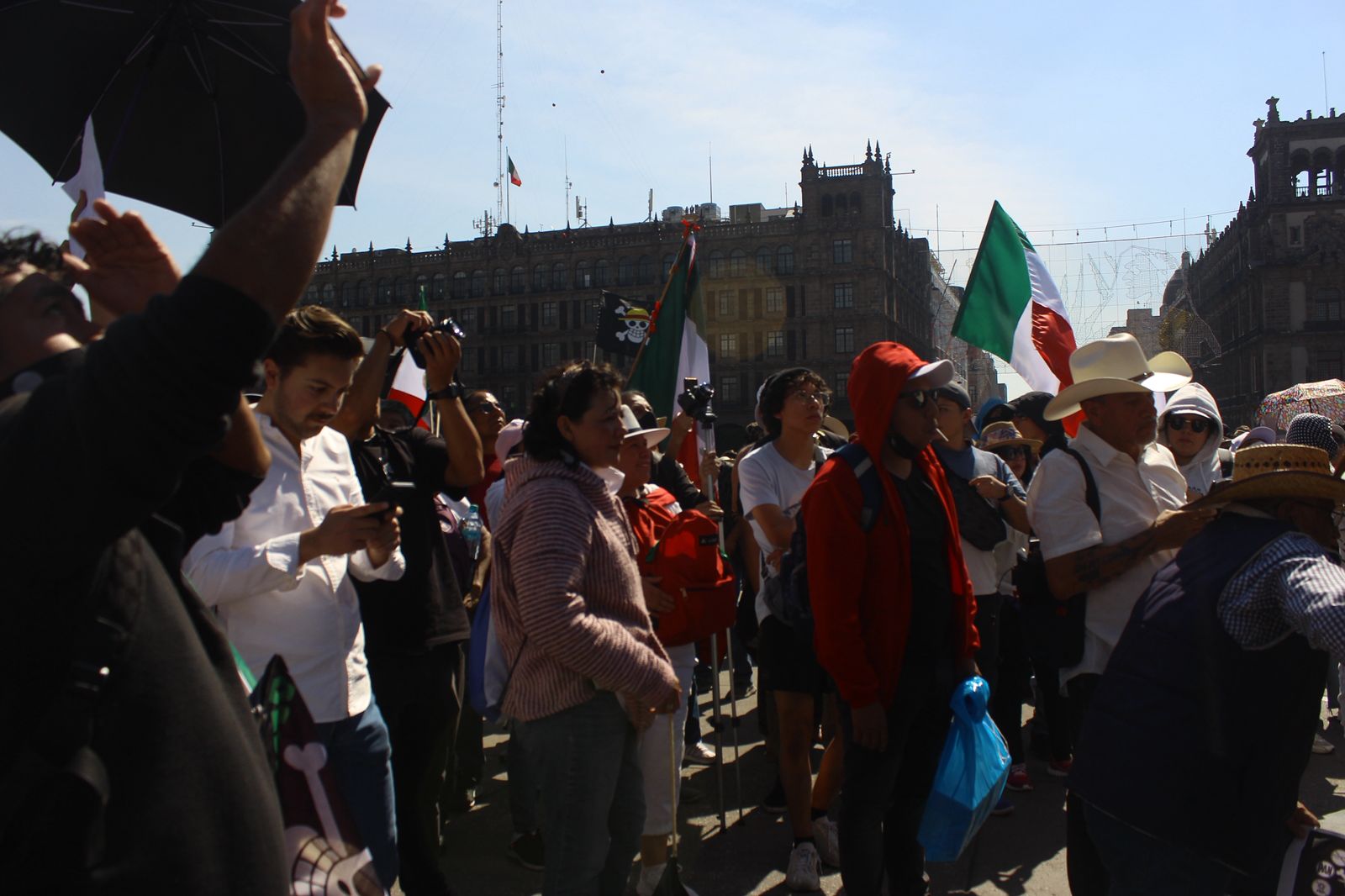 A las 11 de la mañana comenzaron a formarse los contingentes, muchos vestidos con playeras blancas, sombreros y banderas con motivos de One Piece, que la mayoría había comprado previo a la marcha.