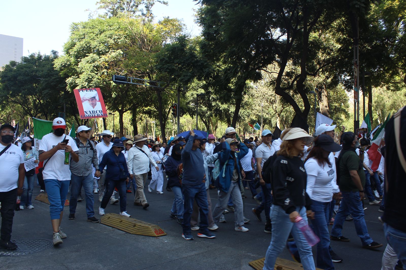 Entre los asistentes se identificaba un perfil socioeconómico principalmente de clase media y media alta, quienes avanzaron por Paseo de la Reforma con una mezcla de consignas, banderas y pancartas.