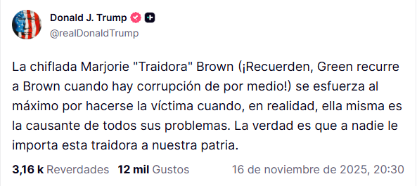 El respaldo de Trump a publicar los archivos de Epstein no garantiza que el Departamento de Justicia lo haga pronto, y sus propios vínculos con Epstein vuelven a estar bajo escrutinio. Aunque la iniciativa avanzara en la Cámara, necesitaría 60 votos en el Senado, incluidos 13 republicanos. El tema ha generado divisiones internas y un choque entre Trump y la congresista republicana Marjorie Taylor Greene, a quien el presidente ha atacado públicamente, pues es de las congresistas de su partido que buscan hacer públicos los expedientes, tensando aún más al Partido Republicano.