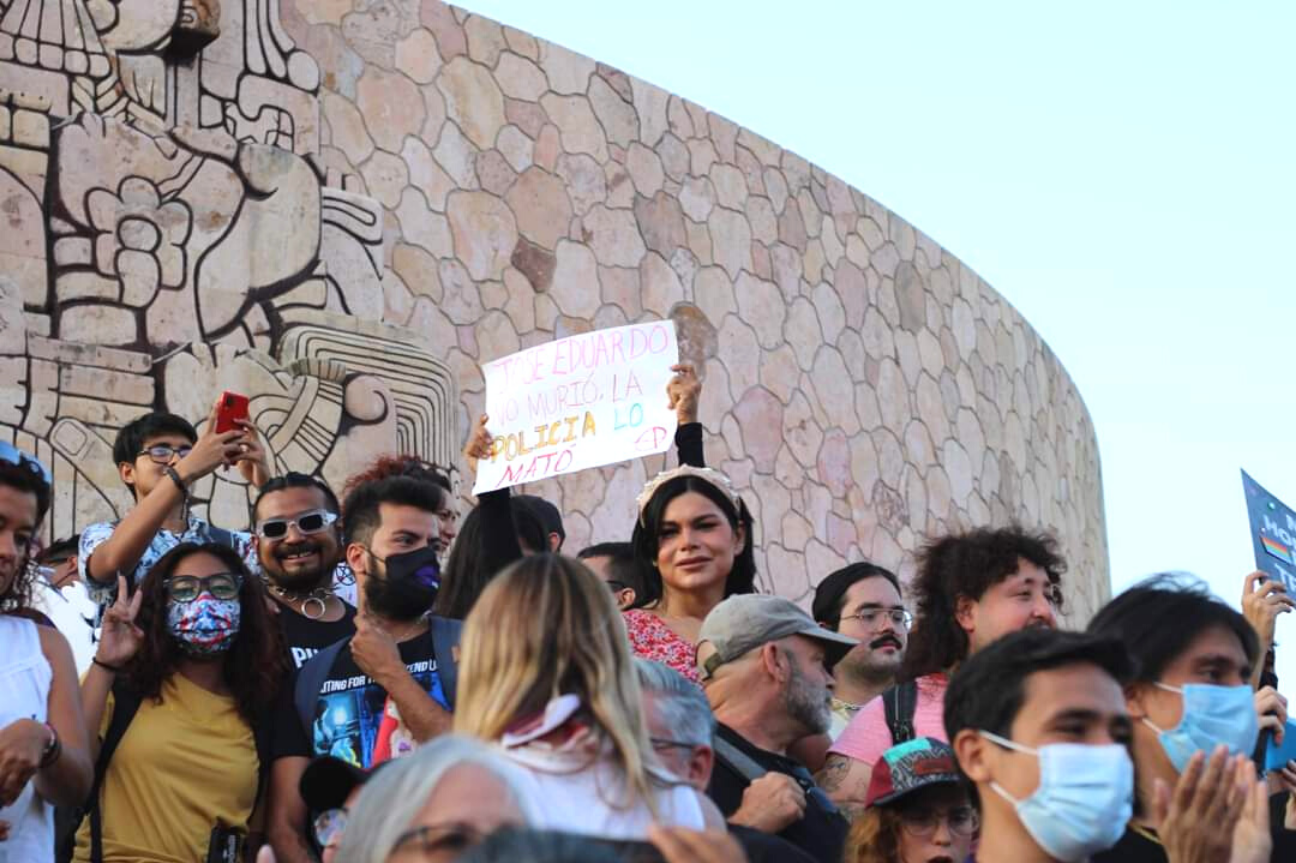 Entre la multitud reunido en el monumento a la patria, del centro histórico de Mérida, se pudo leer entre carteles, uno que tenía la leyenda “José Eduardo no murió, la policía lo mató”. Como recordatorio de la tortura y asesinado que recibió el joven veracruzano José Eduardo Ravelo, en manos de la policía municipal de Mérida, aunque en la declaración del joven ante la fiscalía del estado indicaba a la policía Estatal. Lo anterior abrió un debate entre ambas autoridades para señalar culpables, menos la justicia.
