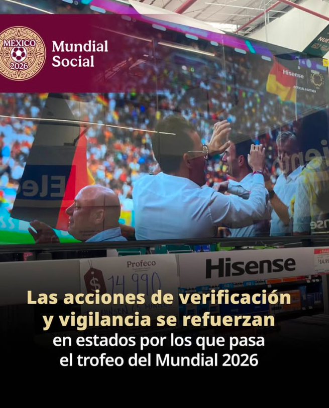 La PROFECO recordó que las acciones de verificación y vigilancia se refuerzan durante el recorrido del trofeo del Mundial 2026, el cual, inició el 28 de febrero y terminará el 8 de junio.