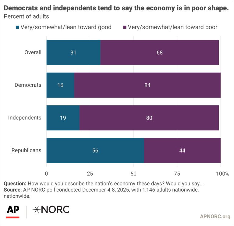 La mayoría de la ciudadanía mantiene incertidumbre respecto a la economía. Siete de cada diez describen la situación económica del país como mala. Entre demócratas e independientes, ocho de cada diez la califican así, casi el doble que entre los republicanos, donde cuatro de cada diez opinan lo mismo.