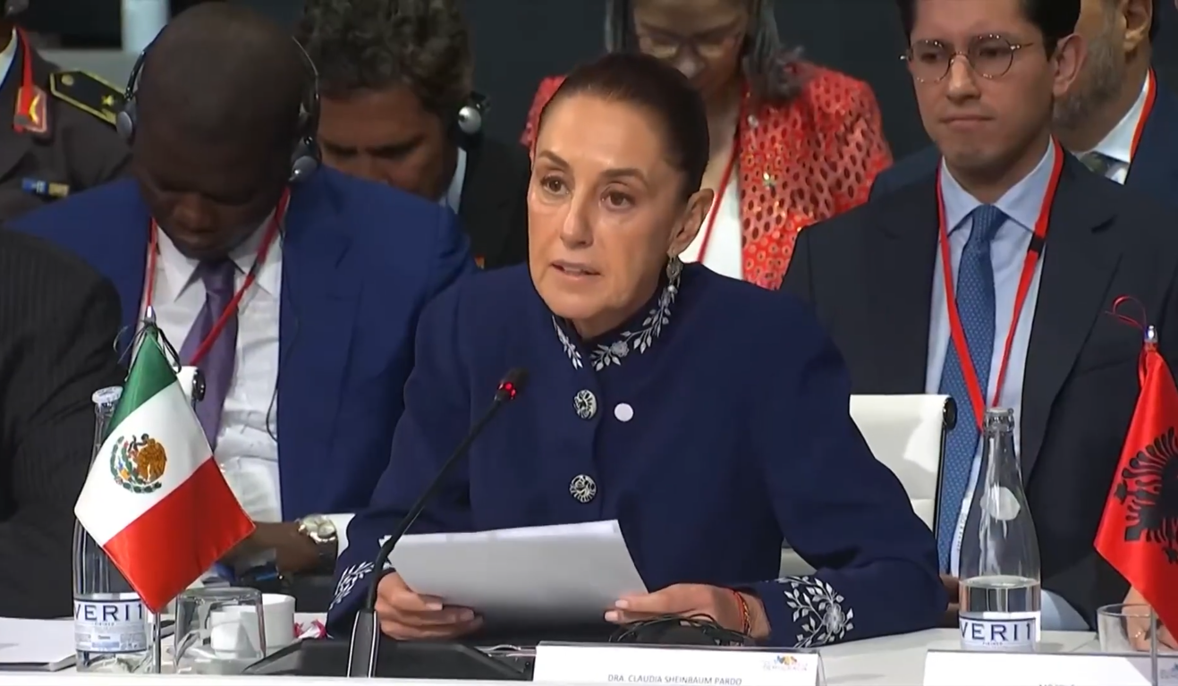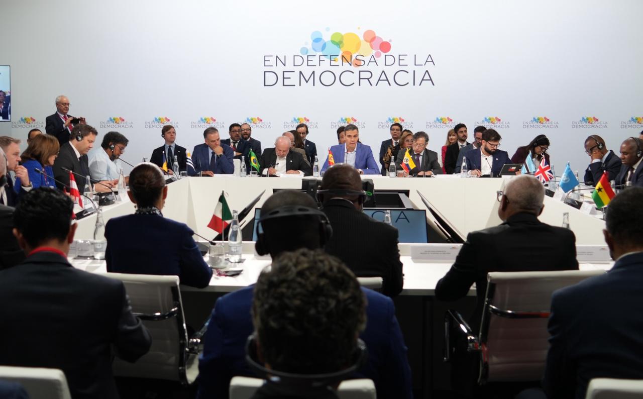 Durante su mensaje en la IV Cumbre en Defensa por la Democracia, la presidenta de México, Claudia Sheinbaum, reiteró su propuesta de destinar el 10% del gasto mundial anual que se usa en armamento para la reforestación de miles de hectáreas en todo el mundo y que se emita un pronunciamiento contra el bloqueo que mantiene Estados Unidos contra Cuba, en favor de la paz.
