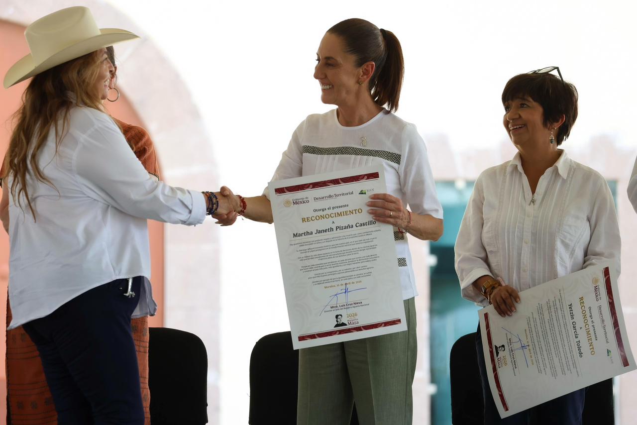 “En el Humanismo Mexicano, Zapata nos inspira; nos recuerda que el poder solo tiene sentido cuando se pone al servicio del pueblo, que gobernar es, ante todo, escuchar, servir y transformar. Y hoy, con profundo orgullo, damos un paso más en ese camino: hoy entregamos certificados a mujeres propietarias de sus tierras de labor y a presidentas de Comisariados Ejidales y Comunales. Hoy reconocemos su esfuerzo, sus derechos y su historia, porque el Zapatismo también estuvo construido con mujeres”, agregó la mandataria.