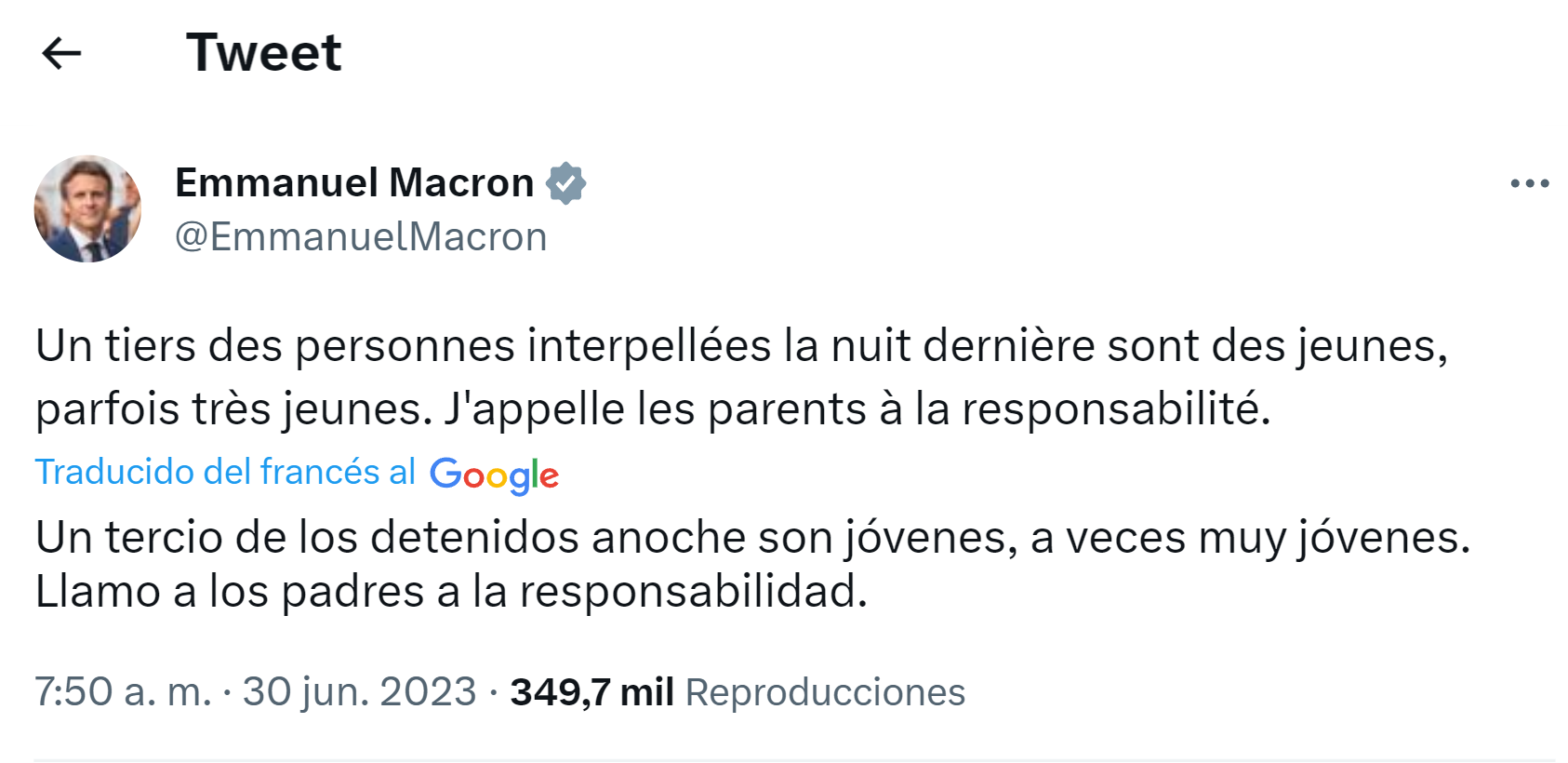 Este suceso ha resonado en el país por el uso excesivo de violencia de las fuerzas de seguridad francesas, el cual en 2005 detonó una serie de protestas a raíz de la muerte de dos menores de origen africano en una persecución policial y más de 6 mil personas fueron detenidas.