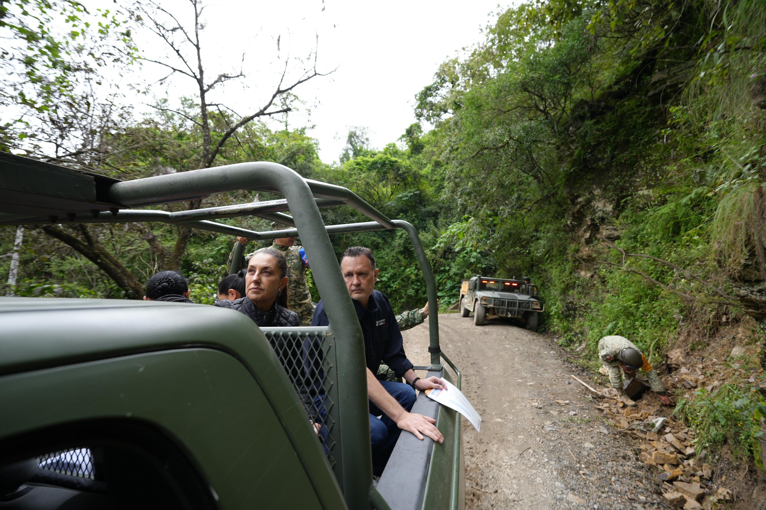 “Seguimos en Querétaro la supervisión de labores y apertura de caminos afectados por lluvias. En Puente de Dios informamos a la comunidad las acciones de los tres órdenes de gobierno; ya iniciamos el censo en apoyo a la población”, señaló la presidenta a través de sus redes sociales.