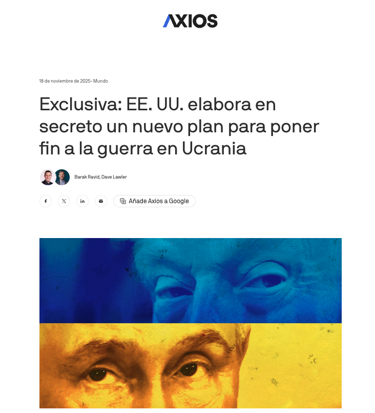 En este escenario de debilidad extrema, se perfila un acuerdo diplomático que Kiev podría verse obligado a firmar. Según filtraciones recientes de Axios, la administración de Donald Trump y el Kremlin han delineado un plan bilateral que contempla: