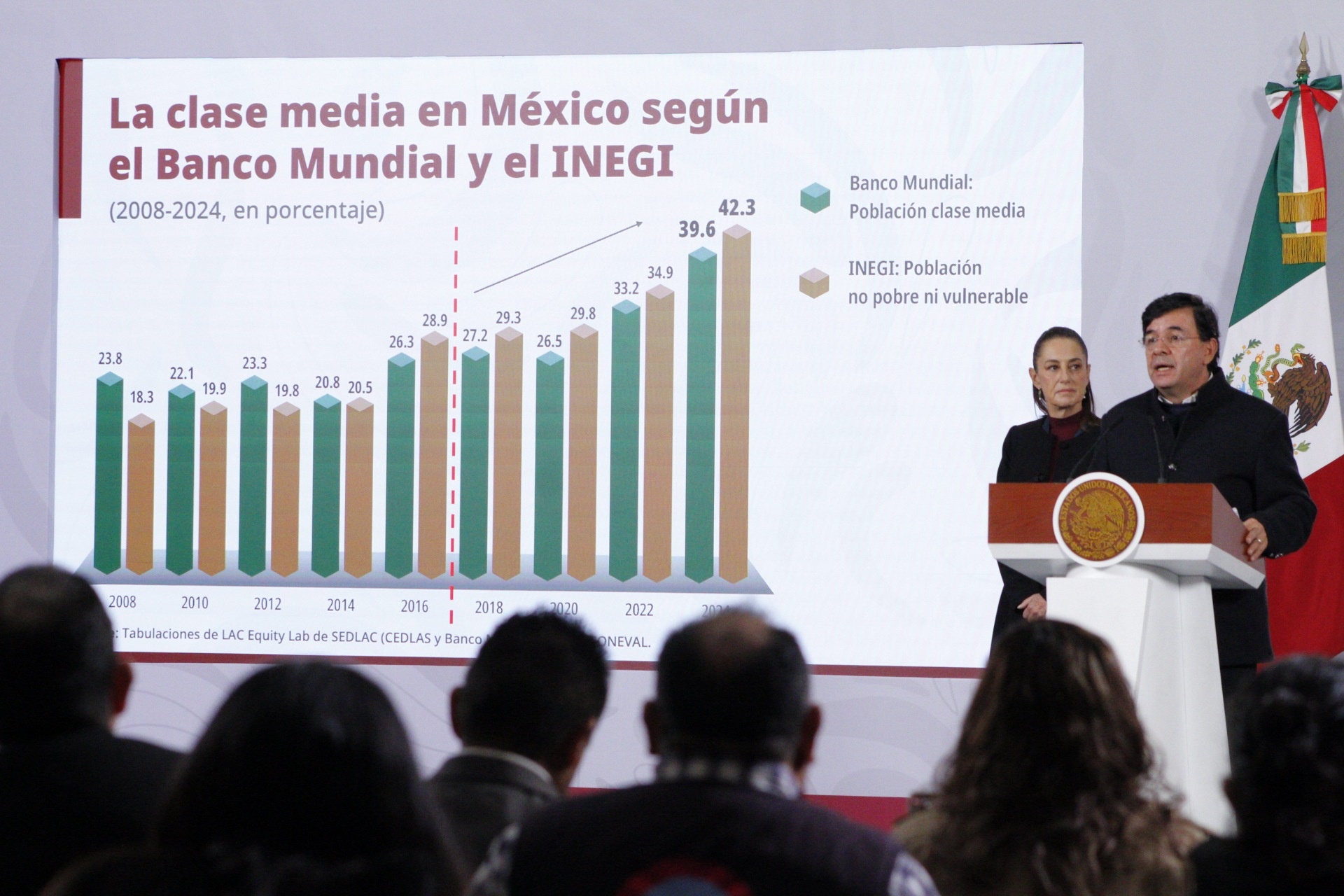 - Reducción de la pobreza: La pobreza en México disminuyó un 13.6% y la clase media aumentó un 12.4%, según datos del INEGI y el Banco Mundial.