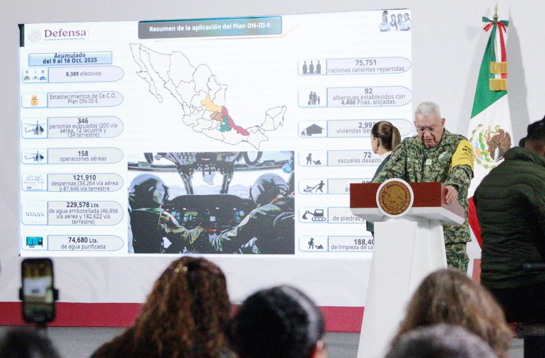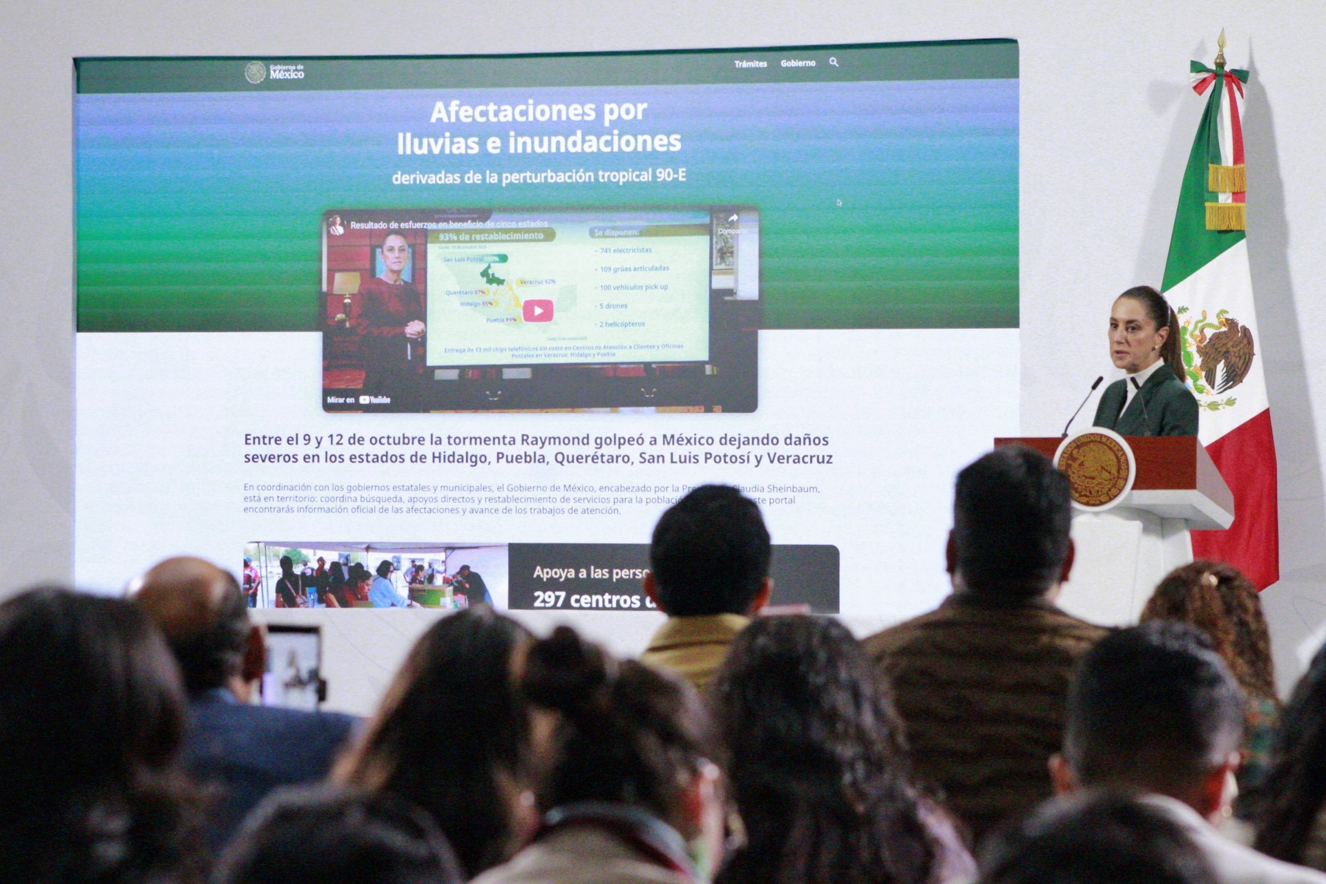 - Afectaciones por lluvias: La presidenta informó que suman 72 personas fallecidas y 48 personas no localizadas en cinco estados afectados por las intensas lluvias. Agradeció a más de 52 mil funcionarios desplegados para labores de apoyo a la población