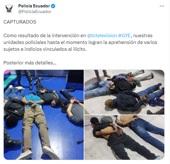 En la señal en vivo y a nivel nacional, se presenció cómo cerca de diez hombres encapuchados y armados apuntaban a los trabajadores del canal, que se encuentra en la ciudad de Guayaquil.