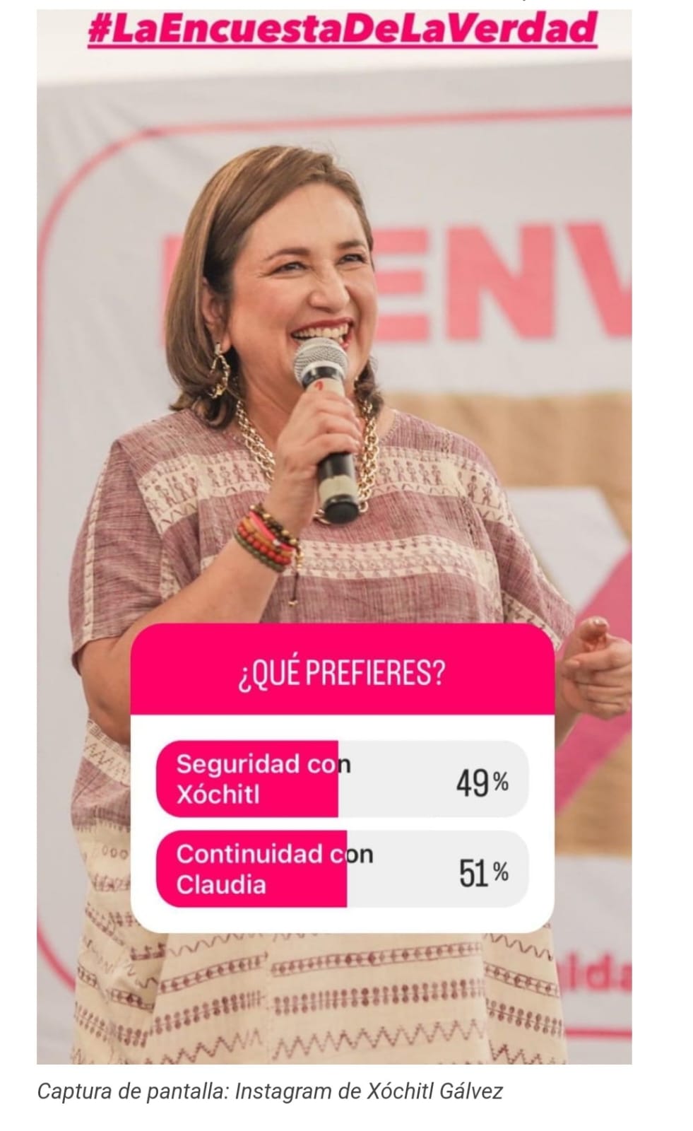 Este suceso se suma al inconveniente sufrido por la exsenadora también el 19 de enero, cuando subió “La encuesta de la verdad”, a las “historias” de sus redes sociales, para medir las preferencias electorales entre ella y su contrincante Claudia Sheinbaum. Usuarios de la redes sociales documentaron que “La encuesta de la verdad” no favoreció a la precandidata Gálvez, por lo que horas más tarde fue borrada de sus “historias”.
