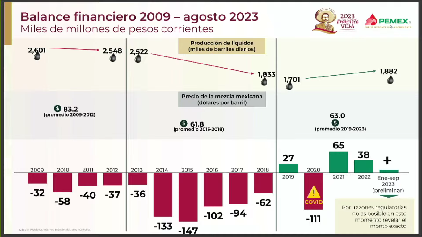 En 2023, con datos de la paraestatal, la deuda de Pemex es de 105 mil 800 millones de dólares, esto como resultado de los malos manejos durante el periodo neoliberal, sin embargo, esto representa 17.8% menos que en 2018.