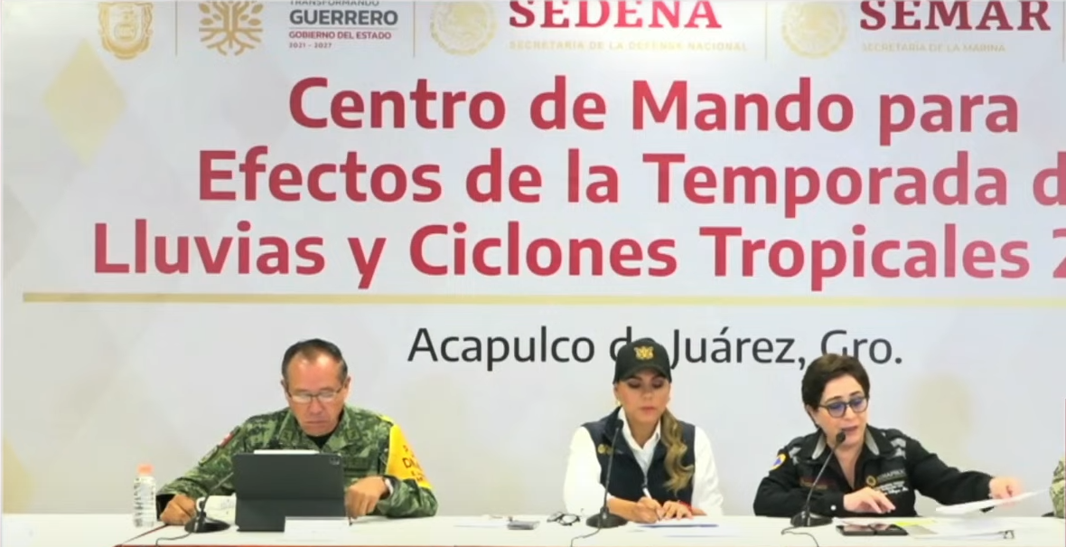 La gobernadora de Guerrero, Evelyn Salgado, y la titular de la Coordinación Nacional de Protección Civil (CNPC), Laura Alzúa, informaron desde el Centro de Mando para Efectos de la Temporada de Lluvias y Ciclones Tropicales, en Acapulco, Guerrero, sobre las afectaciones y el despliegue de acciones de apoyo a la población por el paso del huracán John en la entidad.