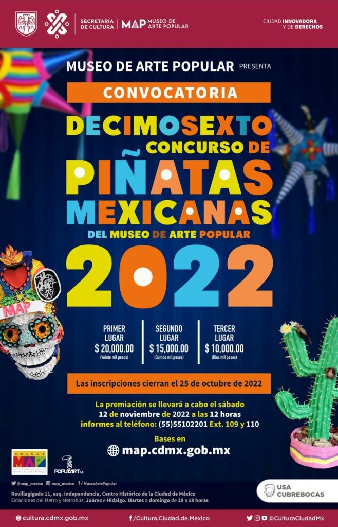 El Museo de Arte Popular (MAP) lanzó la convocatoria del decimosexto Concurso de Piñatas Mexicanas 2022 para artesanos y artistas mexicanos o extranjeros que viven en México.