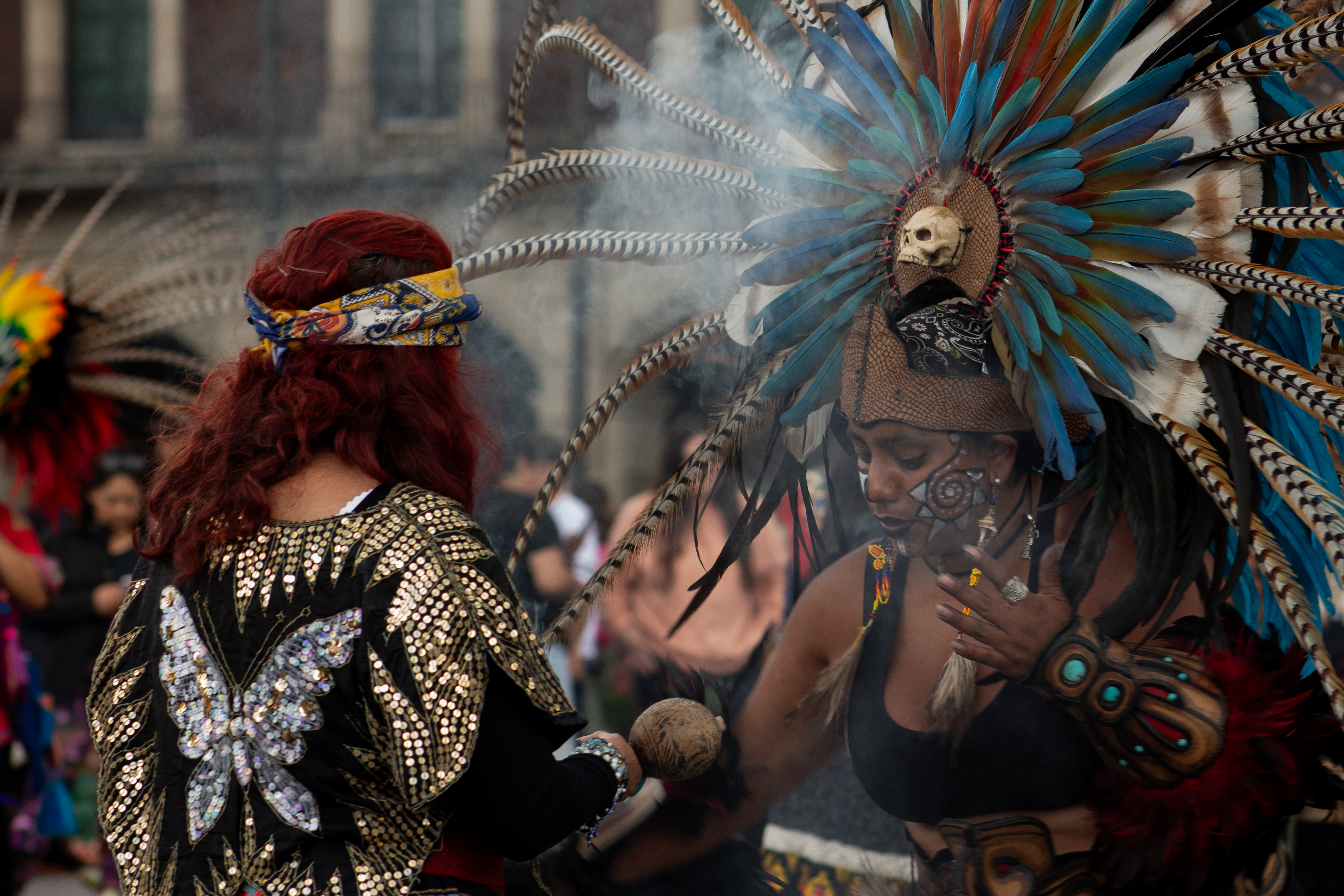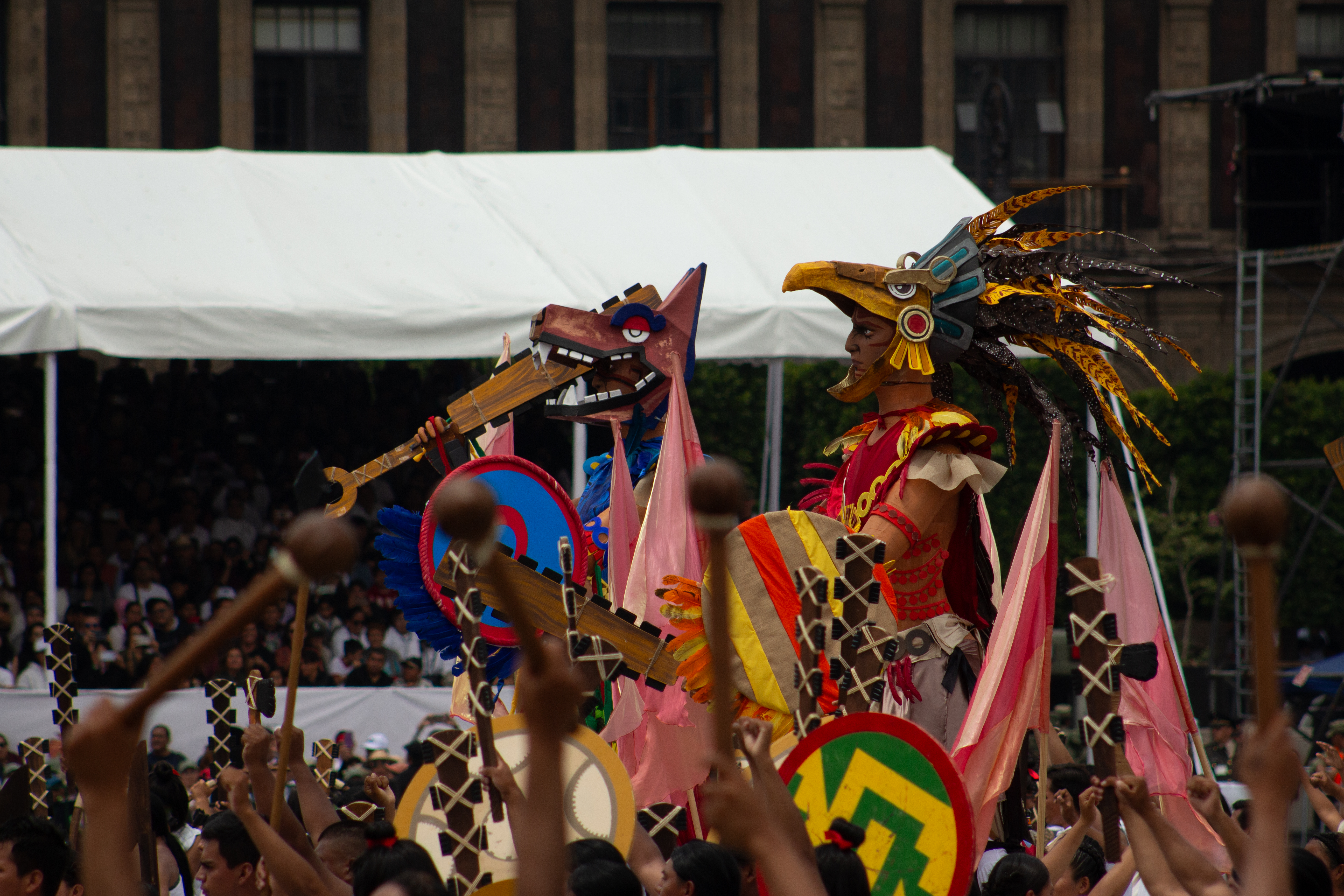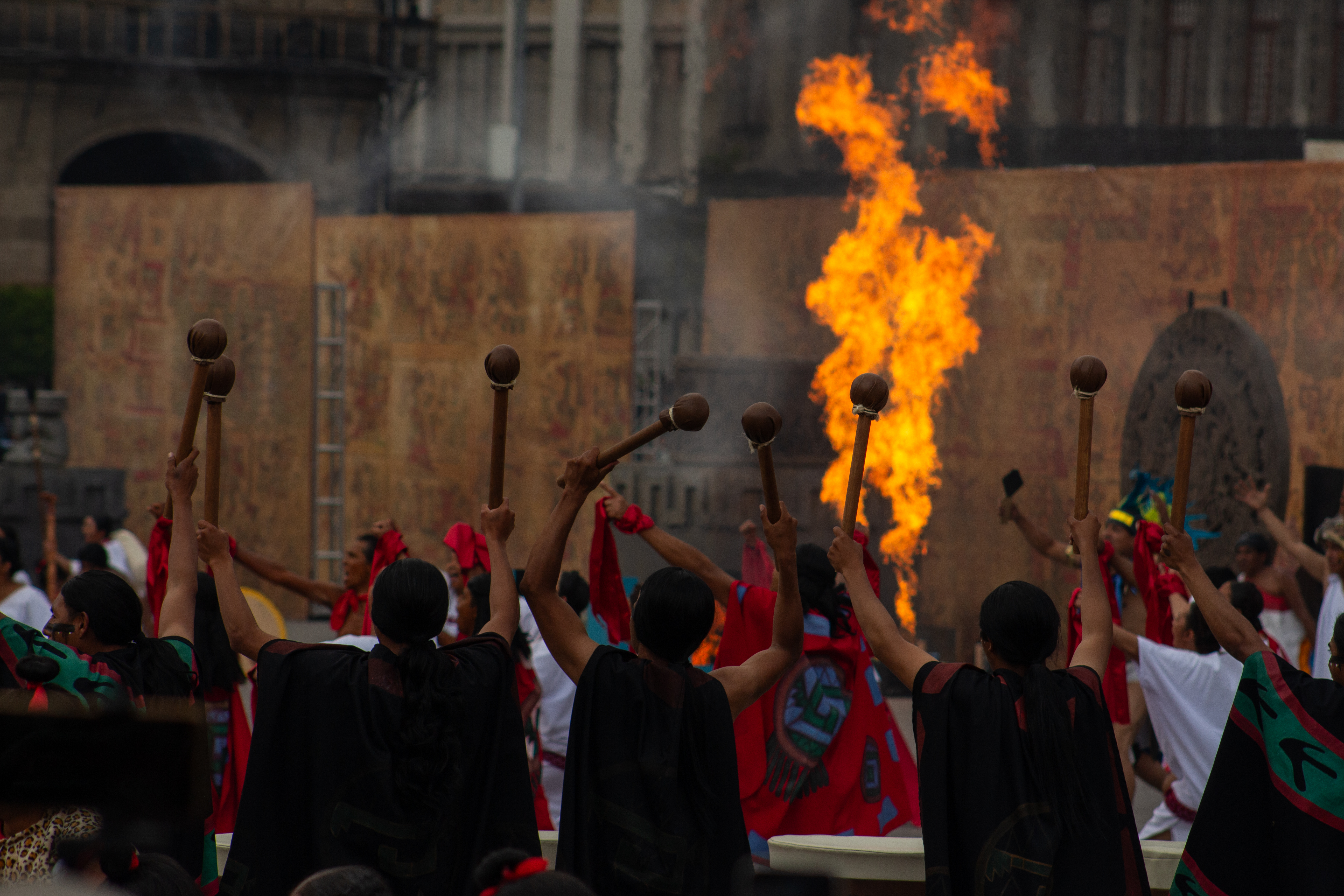 Los mexicas honraban a los dioses con danzas de significados simbólicos. Las festividades como el Panquetzaliztli, dedicadas al mismo Huitzilopochtli, reunían a miles de personas en rituales donde la música, el canto y el movimiento eran formas de comunicación sagrada. Los templos, como el Templo Mayor, eran el corazón ceremonial donde se conectaba el mundo terrenal con lo divino.