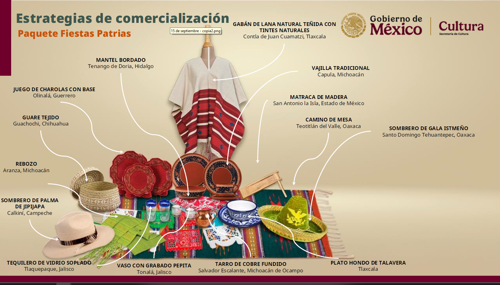 Por otro lado, Marina Núñez indicó que se plantearon estrategias de comercialización de los productos artesanales, entre los que destacan paquetes para las celebraciones de Fiestas Patrias, Día de Muertos y Navidad, los cuales incluyen mantenles, gabanes, vajillas, copaleros, velas, canastas, coronas, nacimientos, entre otros.
