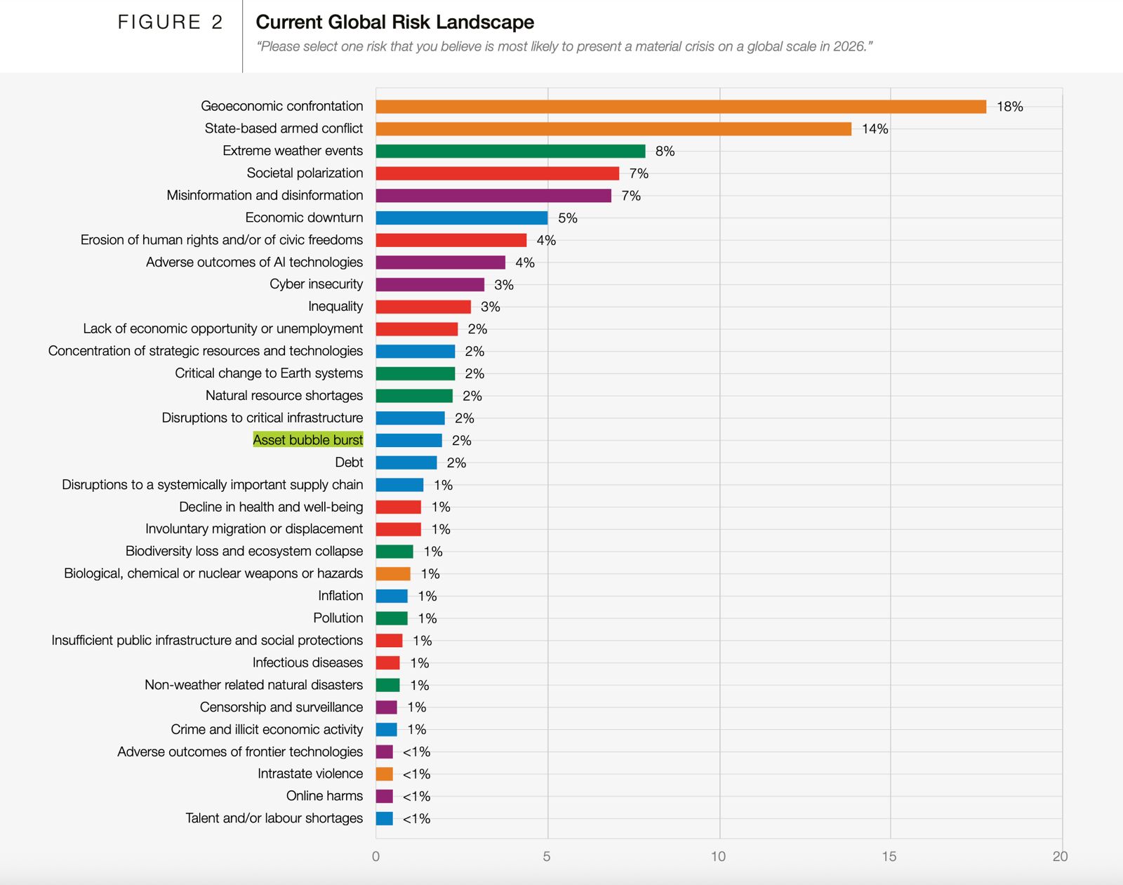 El Informe de Riesgos Globales 2026 del Foro Económico Mundial (WEF) ubica entre los 33 riesgos globales al "Estallido de la burbuja de activos", situándolo como una amenaza económica inminente para los próximos dos años, esta advertencia tiene origen en la Inteligencia Artificial.