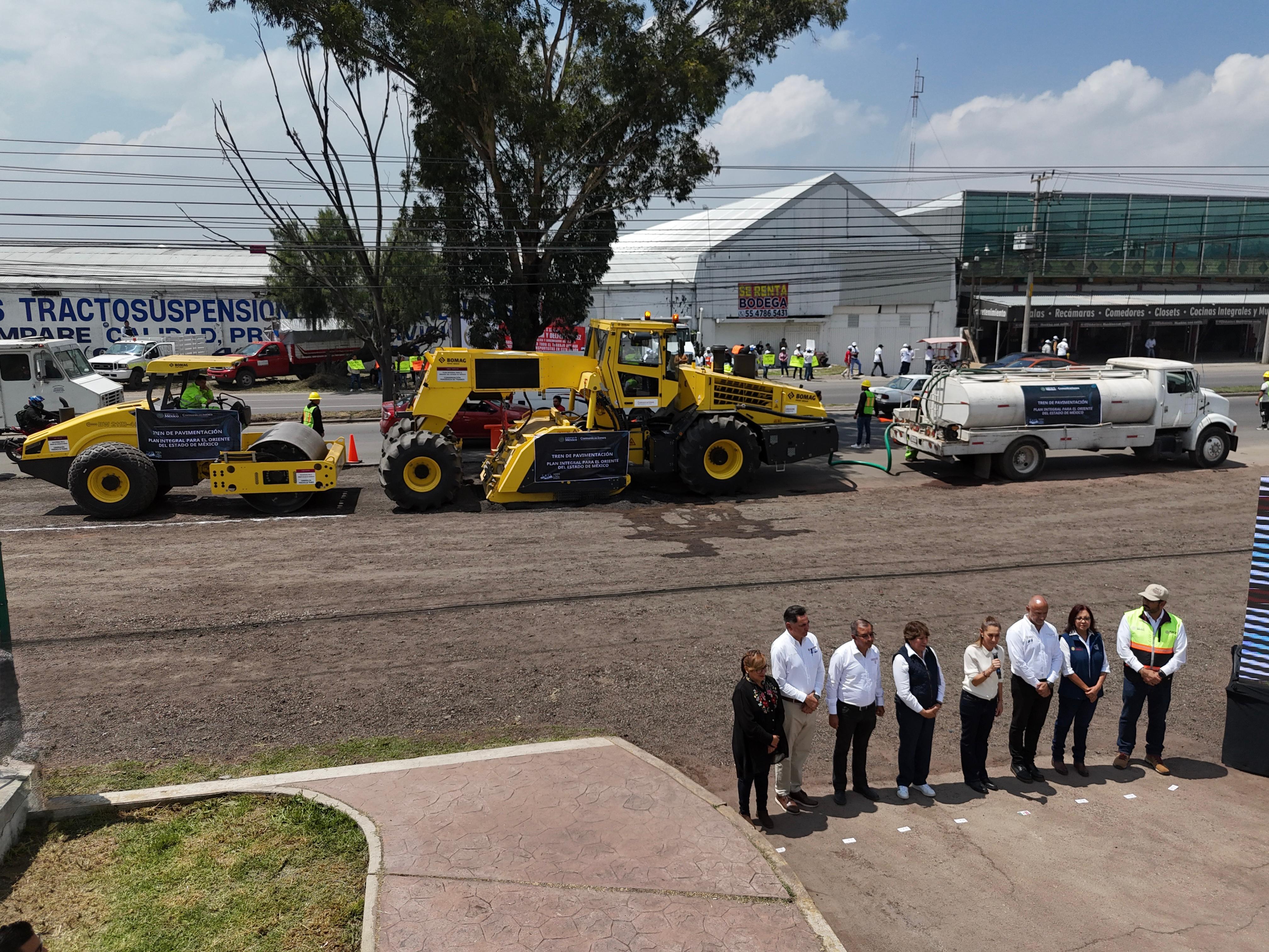 La presidenta Claudia Sheinbaum encabezó, este sábado 30 de agosto, el banderazo de salida a las actividades de los 10 nuevos trenes de repavimentación de la Secretaría de Infraestructura, Comunicaciones y Transportes (SICT) en Acolman, Estado de México, como parte del Plan Integral para el Oriente del estado, maquinaria especializada que permitirá a los gobiernos municipales realizar trabajos completos de pavimentación y repavimentación, sin depender de equipos externos.
