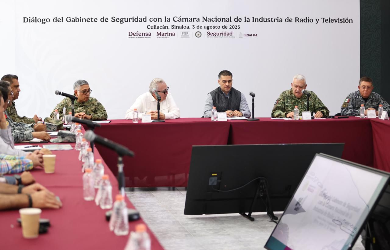 Como parte de la instrucción presidencial de reforzar la presencia institucional en Sinaloa, integrantes del Gabinete de Seguridad del Gobierno de México sostuvieron un encuentro con representantes de la Cámara de la Industria de la Radio y la Televisión (CIRT), delegación Sinaloa, para establecer acciones conjuntas de comunicación y fortalecer el vínculo entre autoridades y medios locales.