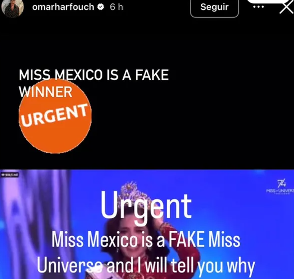 El presidente de Miss Universo, Raúl Rocha Cantú, respondió a las acusaciones de un supuesto fraude hechas por el exjuez Omar Harfouch. El músico franco-libanés dijo haber renunciado por "falta de transparencia" en el certamen, sin embargo, Rocha lo desmintió mostrando una conversación en la que se informa a Harfouch su despido como juez.