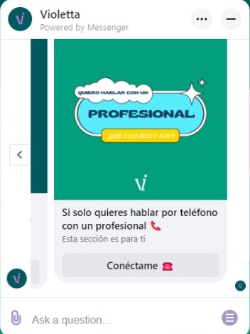 Todas las conversaciones con Violetta son privadas. Nadie las lee ni se comparten, mucho menos se puede saber la identidad de quien utiliza el servicio. Algunas veces, se utilizarán datos estadísticos para mejorar la plataforma, pero todo se analiza de forma anónima.