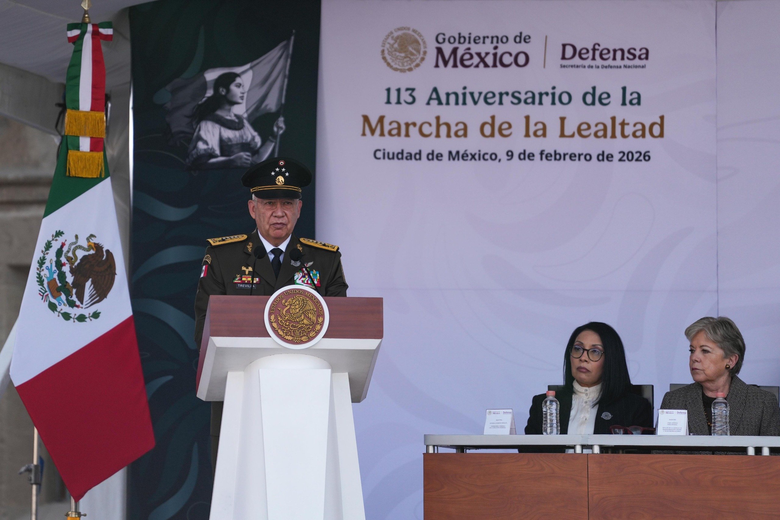 El titular de la Secretaría de Defensa, Ricardo Trevilla Trejo, aseguró que la lealtad es un valor de todas y todos los mexicanos, y refrendó el respaldo absoluto de las Fuerzas Armadas a la presidenta Sheinbaum Pardo, a las instituciones y al pueblo de México, este 9 de febrero durante la ceremonia por el 113 Aniversario de la Marcha de la Lealtad, en el Zócalo de la Ciudad de México.