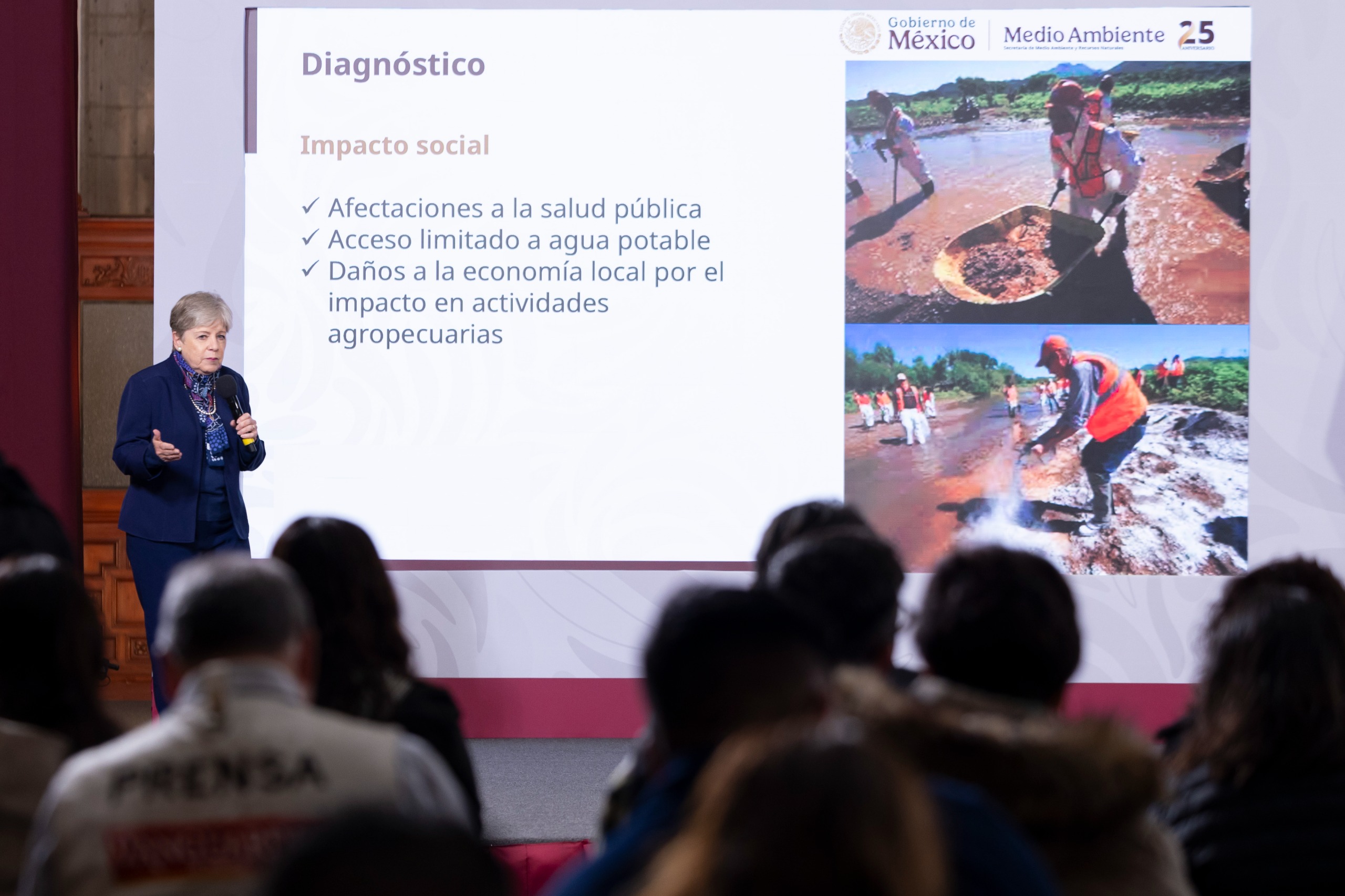 Sobre la problemática ambiental, la secretaria explicó que en febrero de este año se dio inicio al diagnóstico de las demandas de las comunidades para fortalecer las acciones de restauración, saneamiento del agua y mejora en los servicios de salud en las inmediaciones del Río Sonora derivado del derramamiento de sulfato de cobre por parte de Buenavista del Cobre, empresa subsidiaria del mismo grupo.