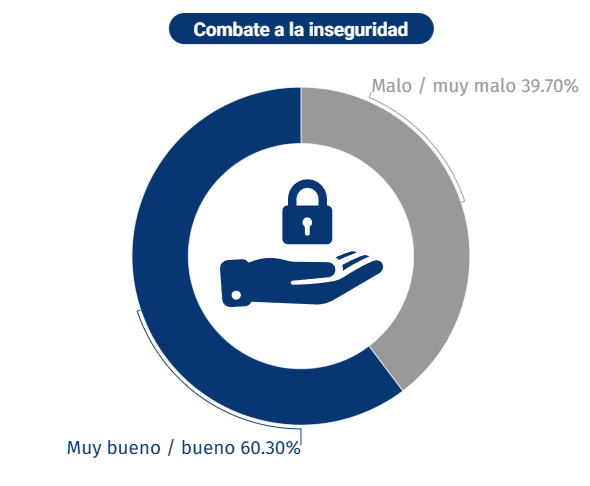 Con relación al combate a la inseguridad, el 60.30% de los mexicanos aprobó las políticas de seguridad implementadas desde el inicio de la administración.