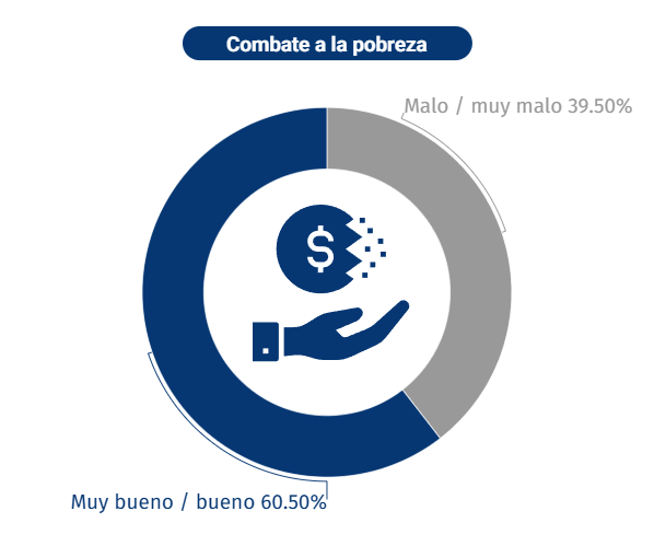 En cuanto al combate a la pobreza, el 60.50% manifestó estar de acuerdo con que las acciones de la administración federal han sido “muy buenas o buenas”, mucho derivado del “las políticas de seguridad implementadas desde el inicio de la administración”.