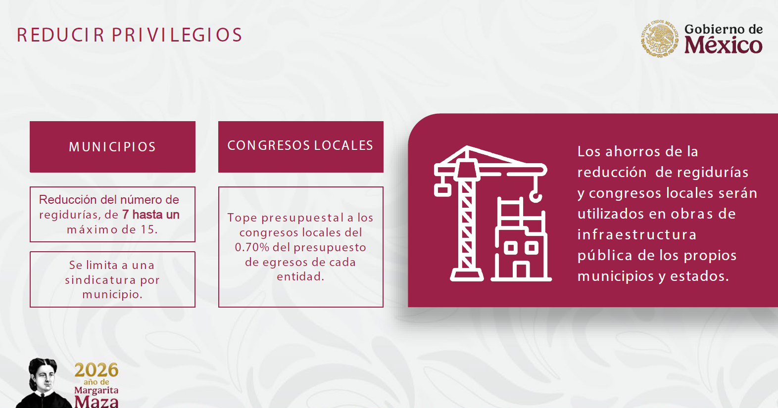 Además, destacó que con la reforma se generarán “ahorros” que puedan ser invertidos en infraestructura social en los municipios y también se establecerán límites en las regidurías para garantizar la representación política y el buen funcionamiento, y que la población formar parte permanentemente en la toma de decisiones.