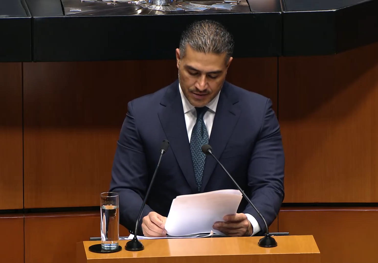 Desde el Pleno del Senado, el secretario García Harfuch, aseguró que a un año del Gobierno de la presidenta Claudia Sheinbaum, la Estrategia Nacional de Seguridad Pública avanza por el camino correcto en el combate a la corrupción y al robo de hidrocarburos, la disminución de homicidios dolosos y el fortalecimiento de la Guardia Nacional.
