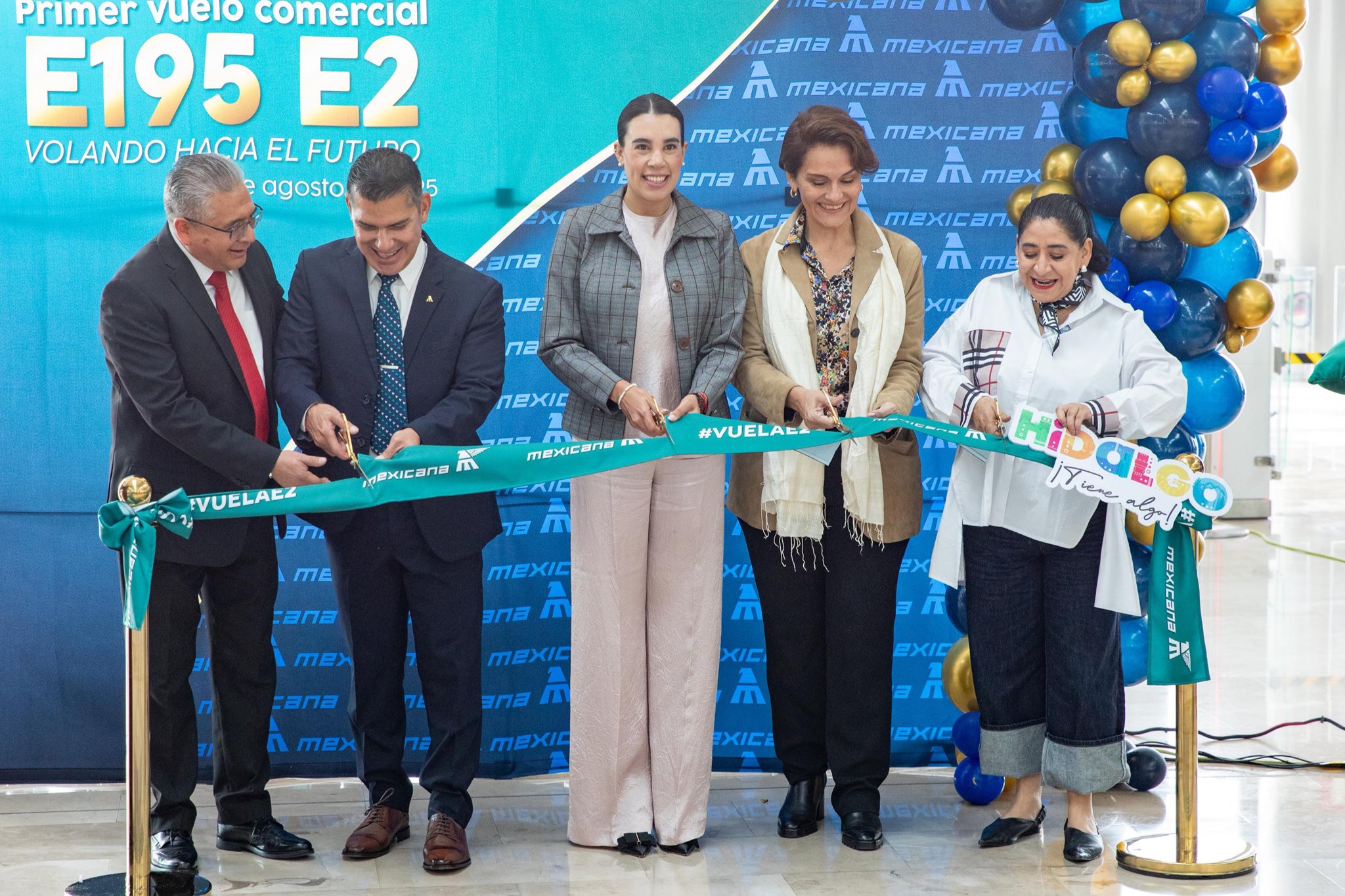 La secretaria de Turismo del Gobierno de México, Josefina Rodríguez Zamora, y el director general de Mexicana, Leobardo Ávila Bojórquez, encabezaron la inauguración del primer vuelo de la aeronave EMBRAER E-195 desde el Aeropuerto Internacional Felipe Ángeles (AIFA) con destino al Aeropuerto Internacional de Tulum.